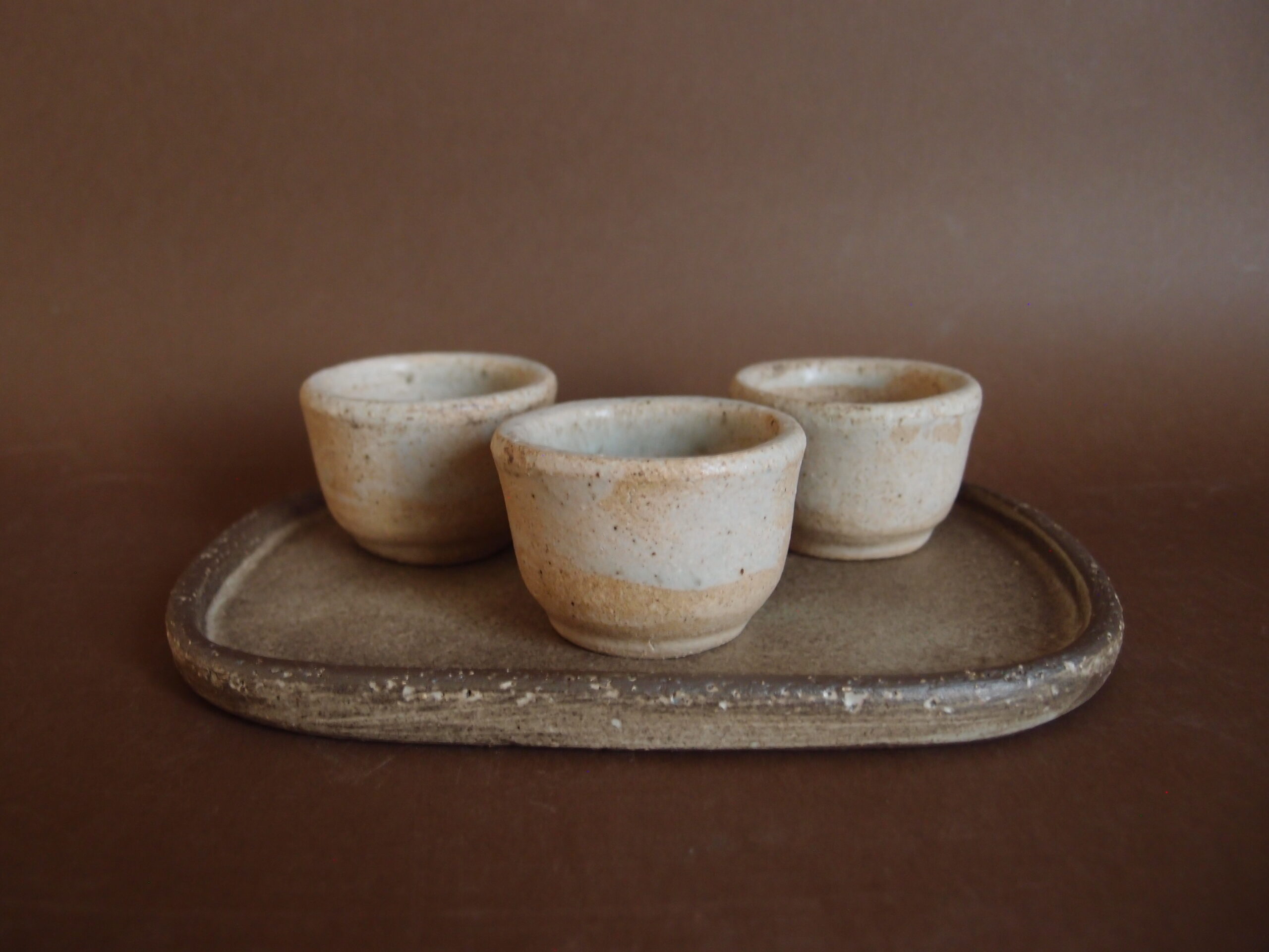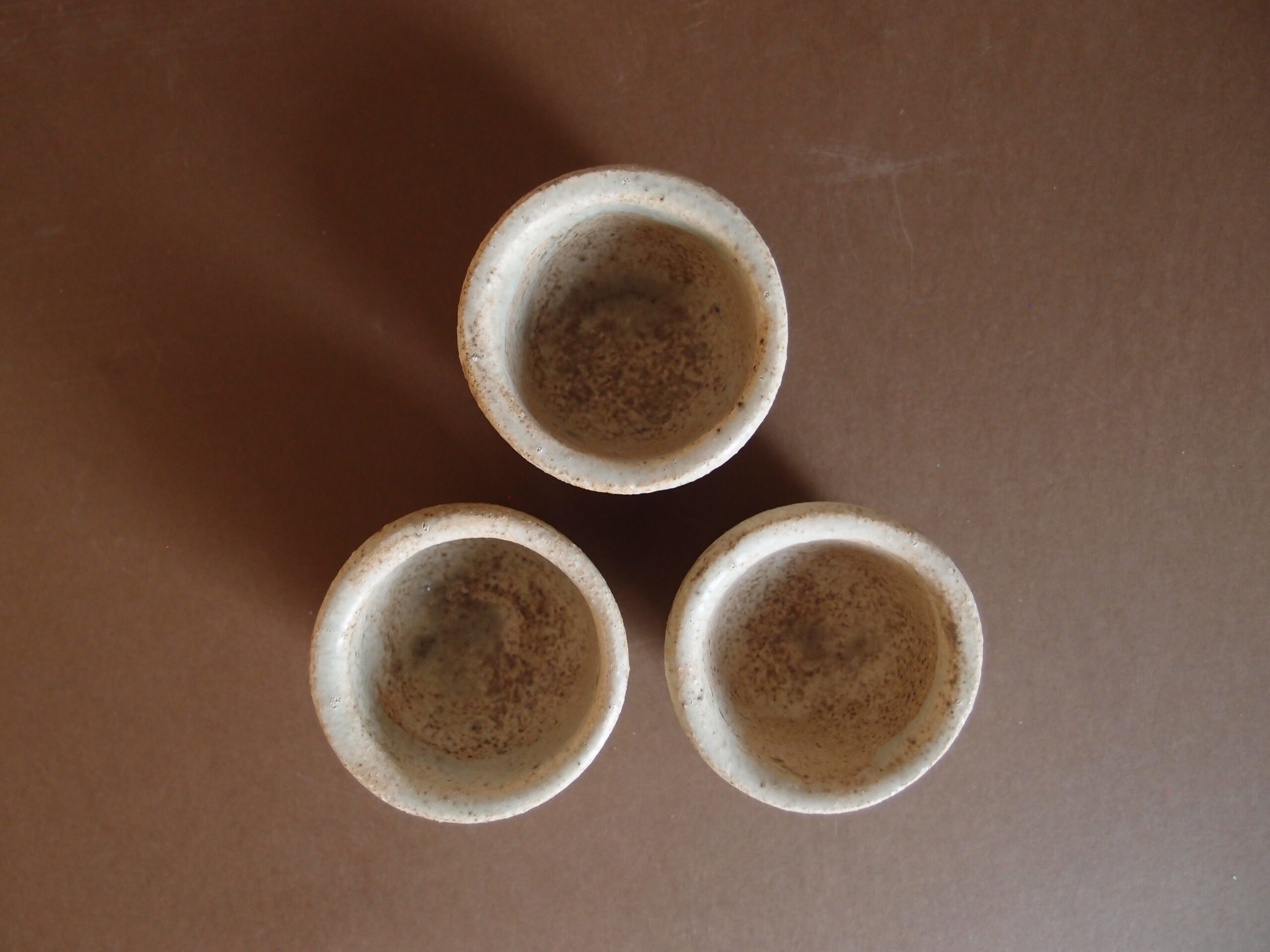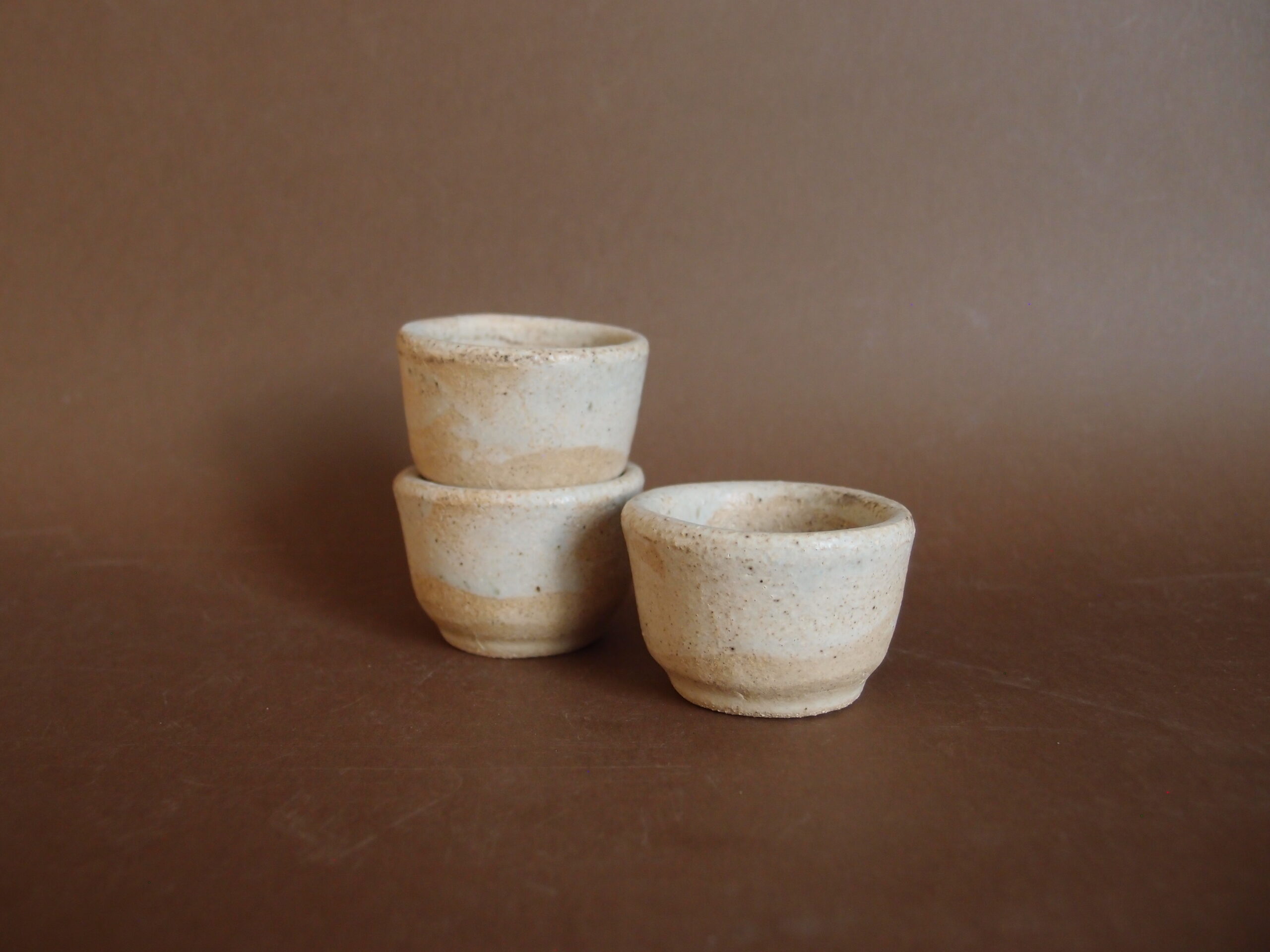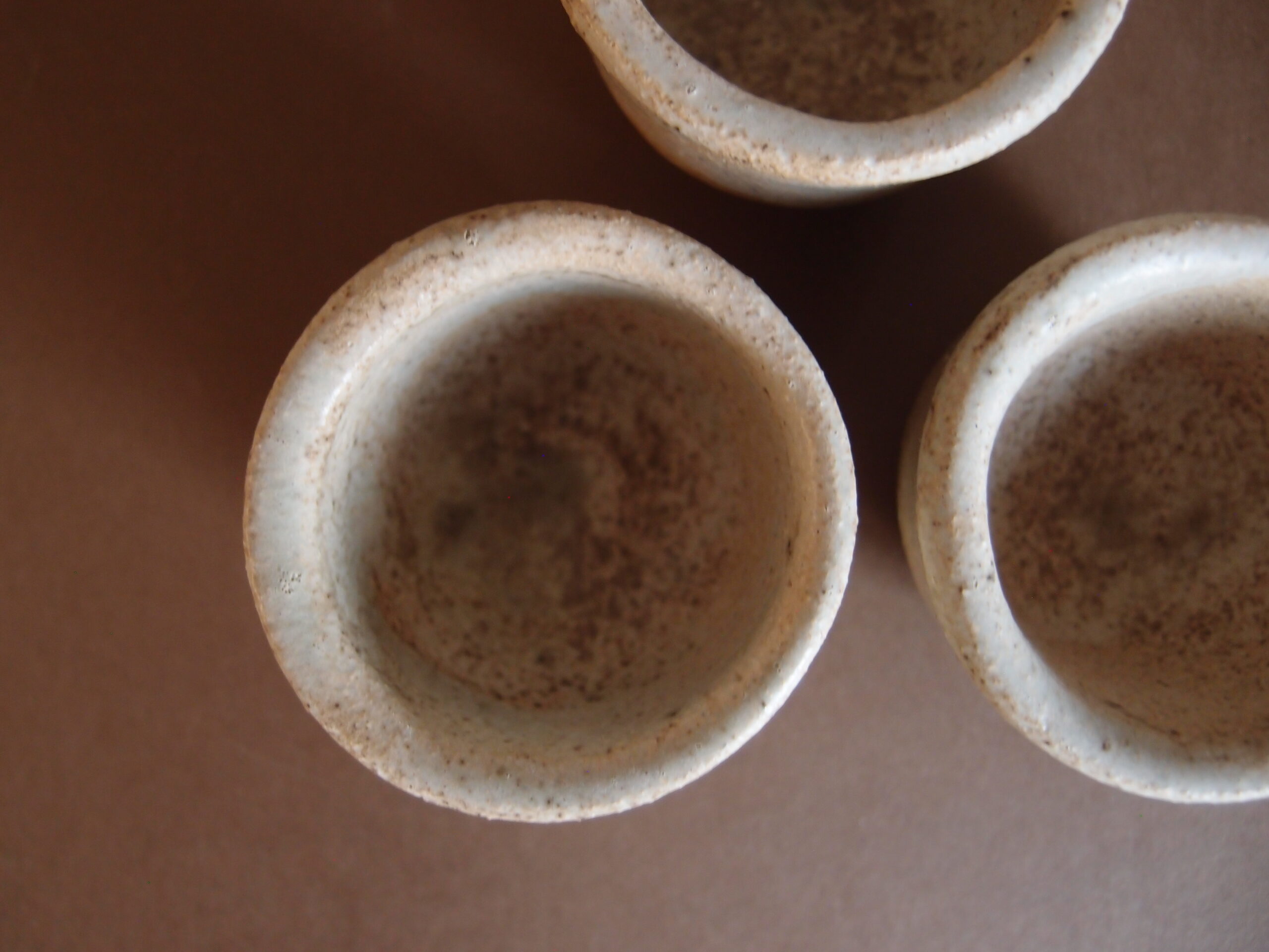 Podstawki wykonane z jasnej gliny, w środku pokryte malinowym, matowym szkliwem, z zewnątrz kremowym z delikatnymi efektami. Kieliszki na jajko, mogą być używane jako małe miseczki na sól, pieprz itp.