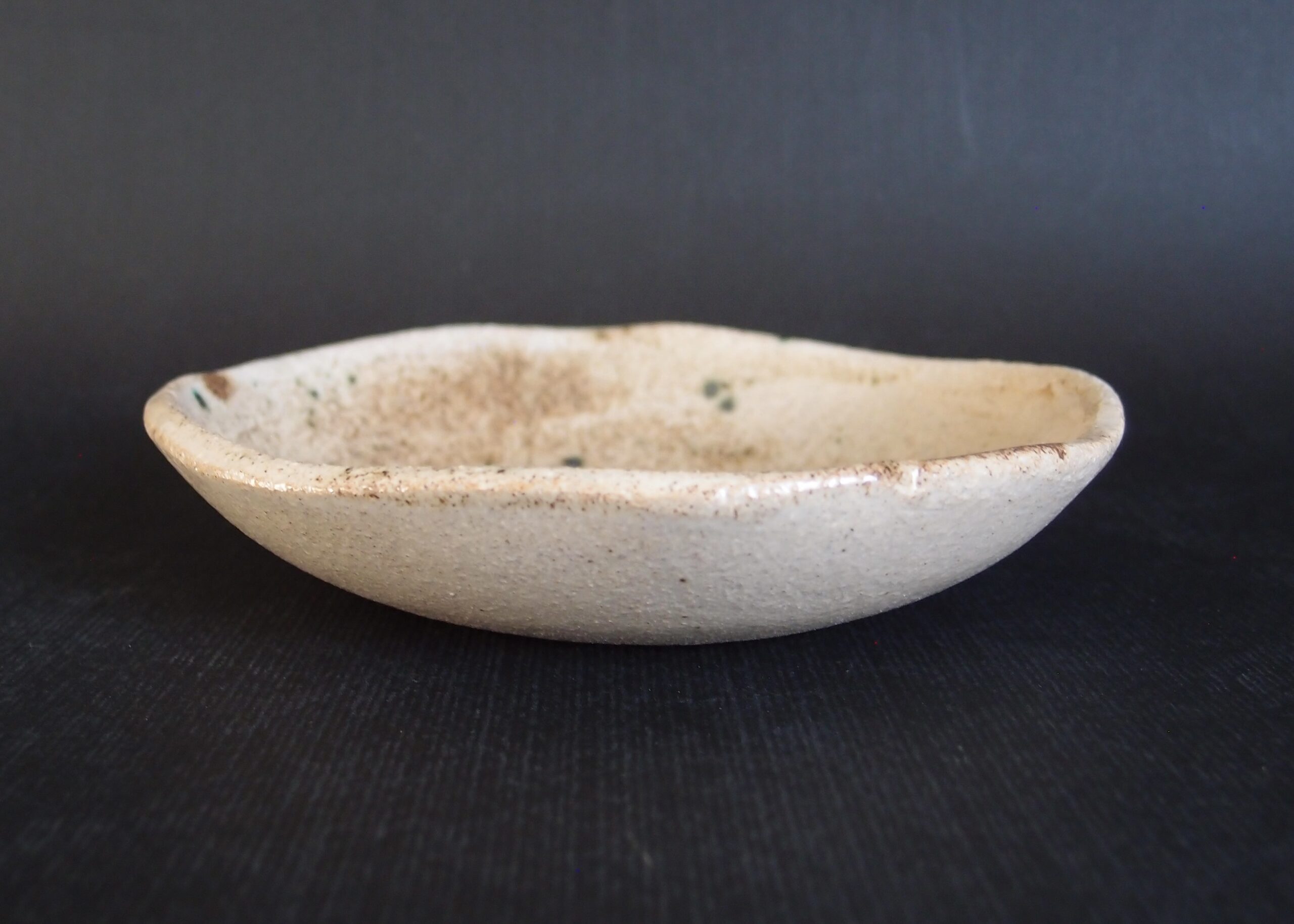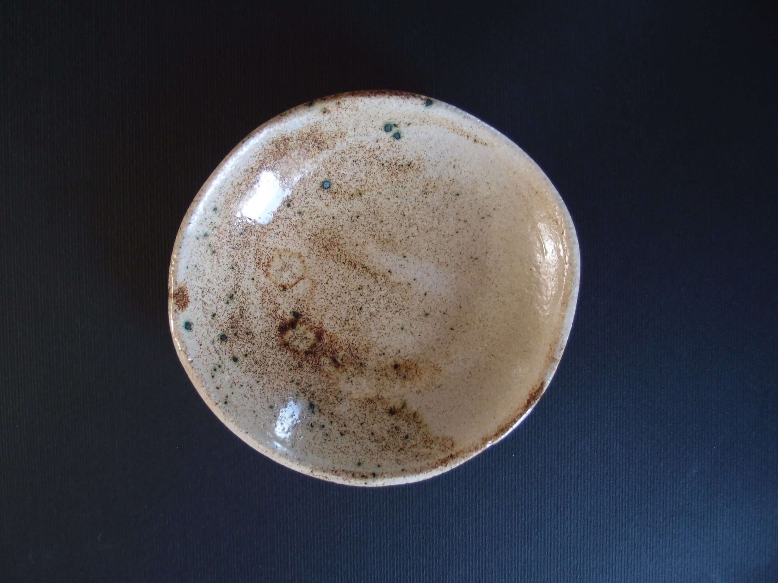 Miska wykonana z jasnej gliny, pokryta w środku beżowym, błyszczącym szkliwem z efektami nakrapiania. Idealna do podawania małych deserów czy dodatków do dań. Może być pięknym akcentem z ceramiką w ciepłych odcieniach.