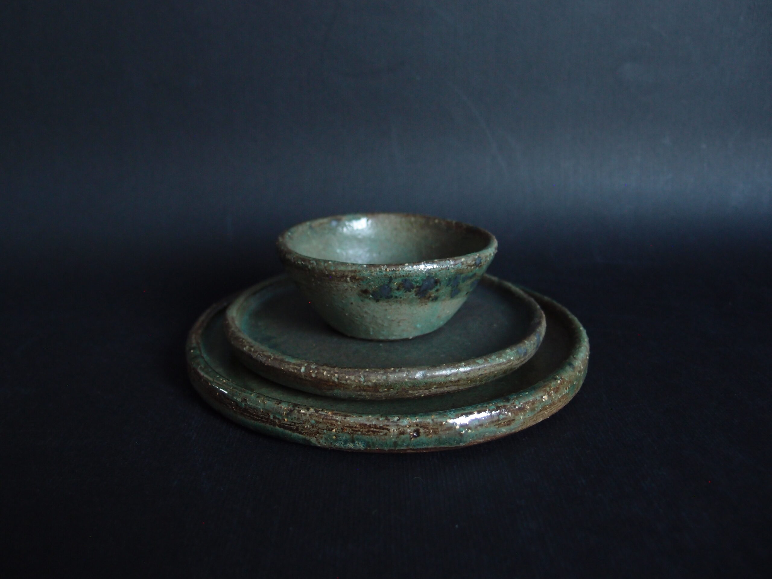 Talerz wykonany z ciemnej gliny, pokryty ciemnozielonym, matowym szkliwem z efektami. Rozmiar talerza pasuje do podawania deserów, małych dań. Może stworzyć komplet z ceramiką w innych odcieniach zieleni.