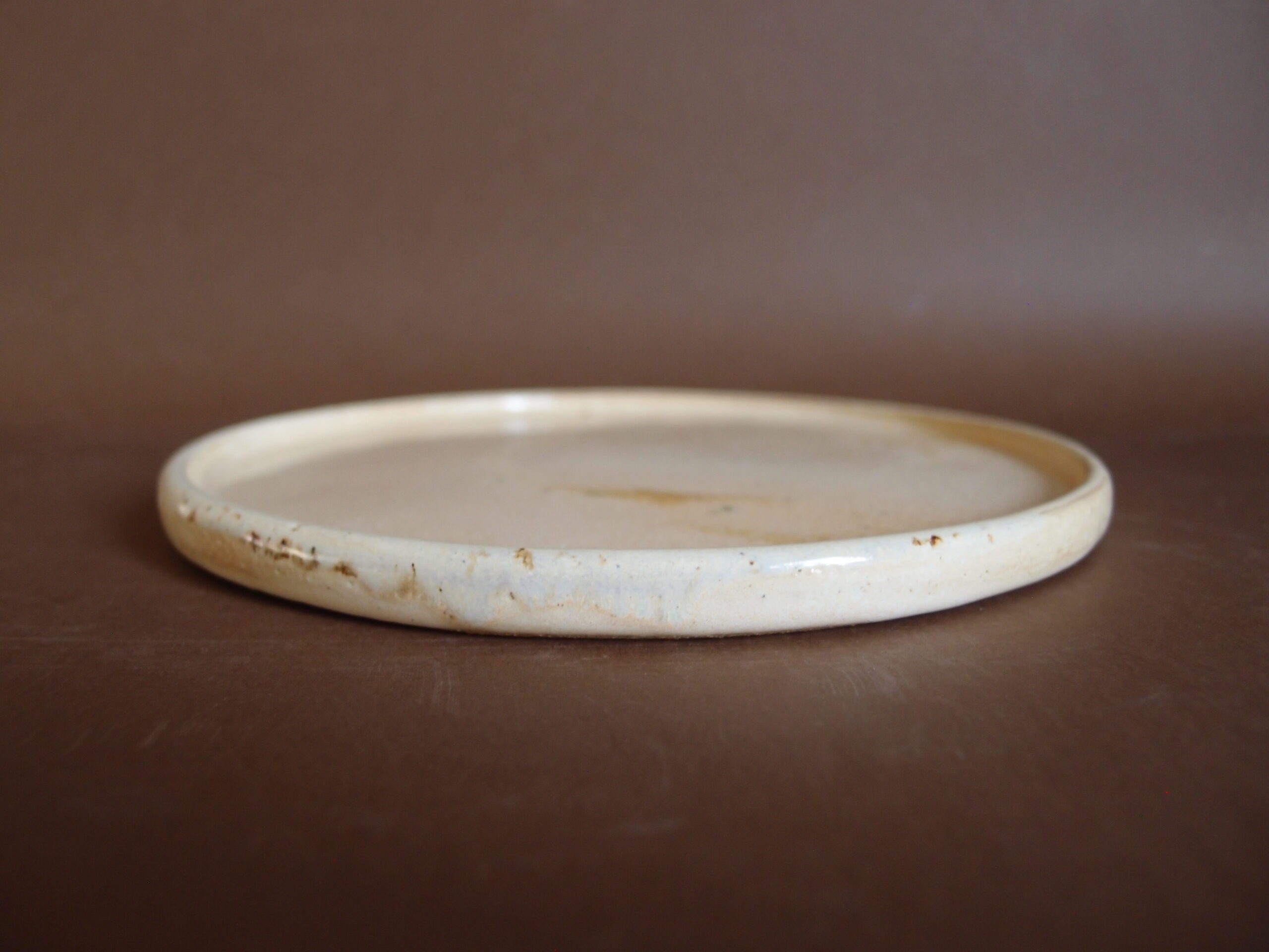 Talerz wykonany z jasnej gliny, pokryty jasnożółtym, matowym szkliwem z delikatnymi efektami. Rozmiar talerza pasuje do podawania deserów, małych dań. Może stworzyć komplet z kolorową ceramiką.