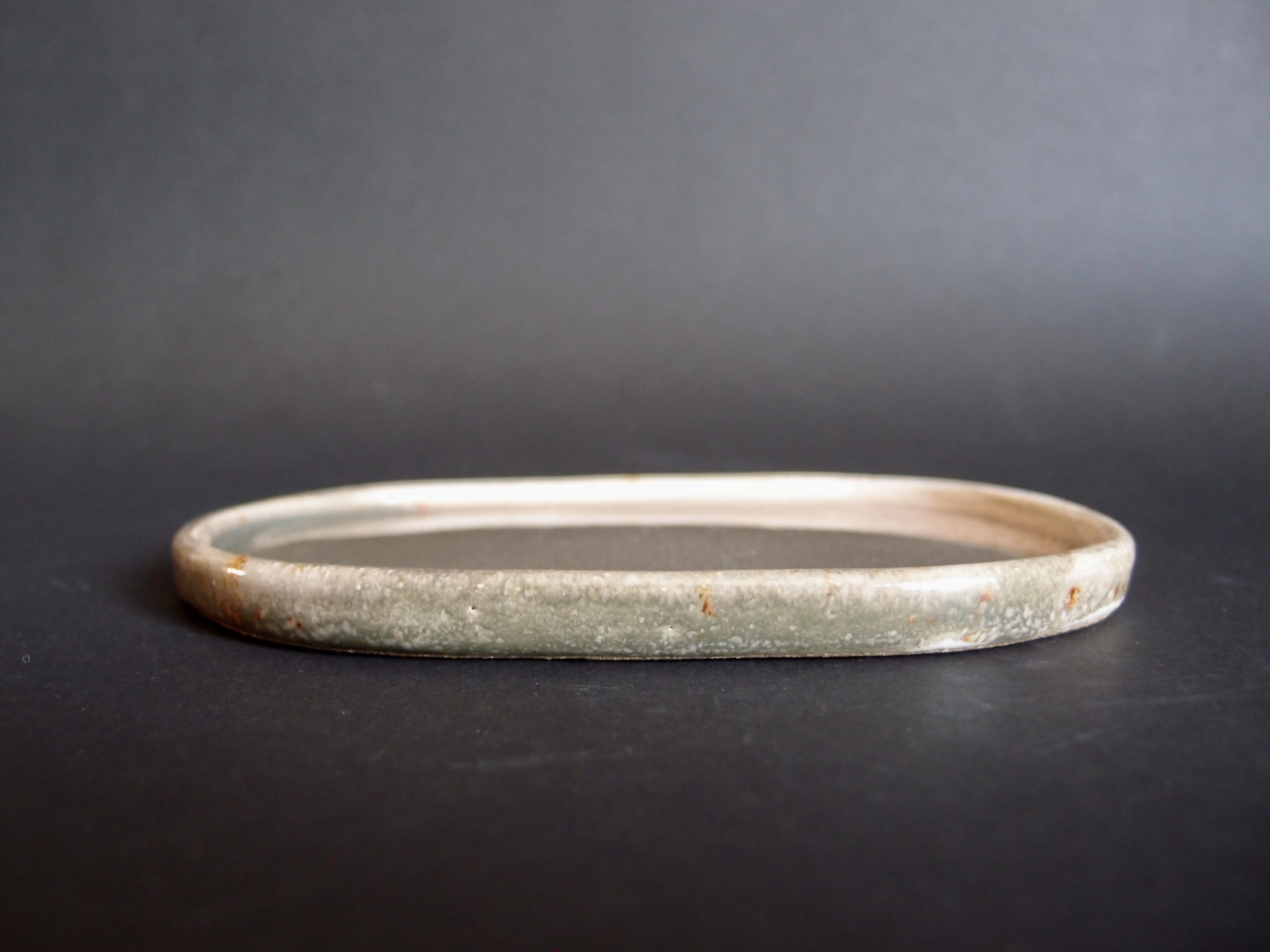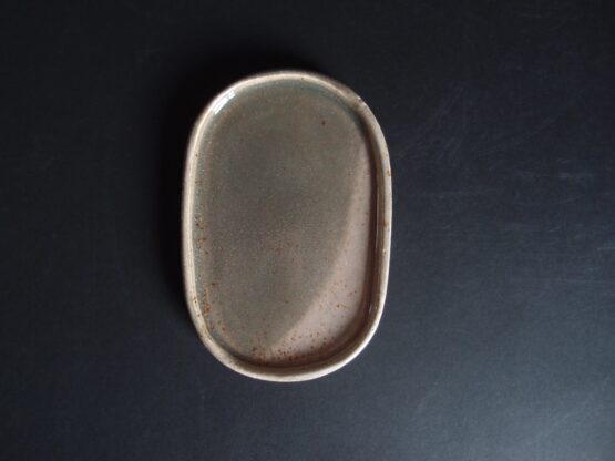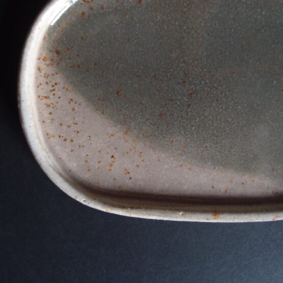 Talerz wykonany z jasnej gliny, pokryty ciemnozielonym, błyszczącym szkliwem z beżowym przetarciem i efektami nakrapiania. Ten rozmiar talerza idealnie nadaję się do podawania ciasteczek, dodatków do dań itp.